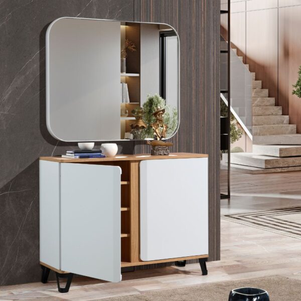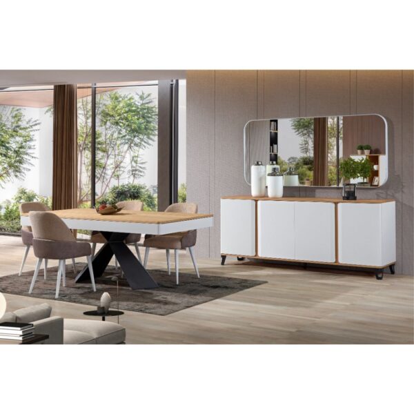 Apresentada na 1ª Edição da InProjecta na Exponor, esta linha conjuga os pés metálicos pretos com a elegância dos lacados e folha de carvalho natural.